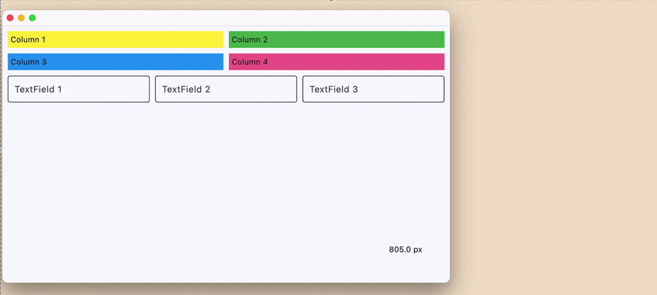 Similar to expand property, every control now has col property which allows specifying how many columns a control should span. For example, to make a layout consisting of two columns spanning 6 virtual columns each: