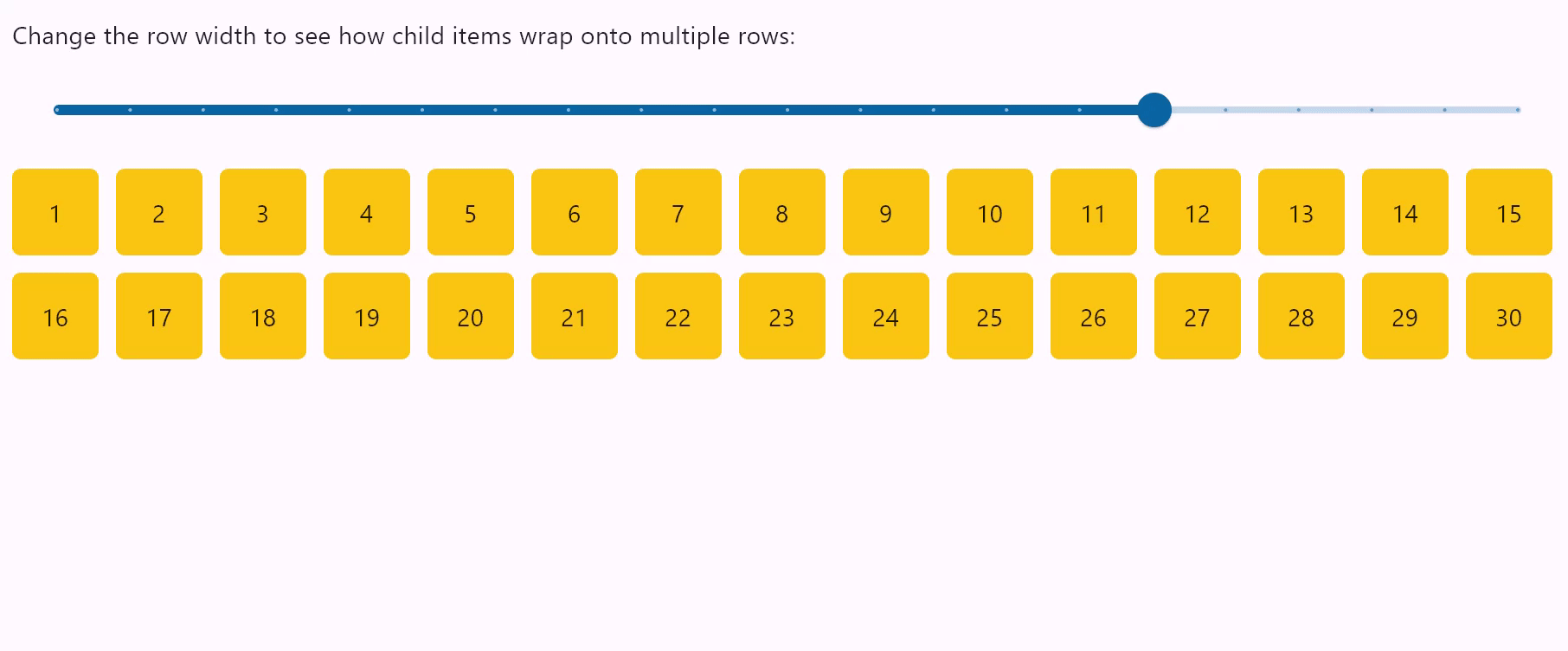 When set to True the Row will put child controls into additional rows (runs) if they don't fit a single row.
